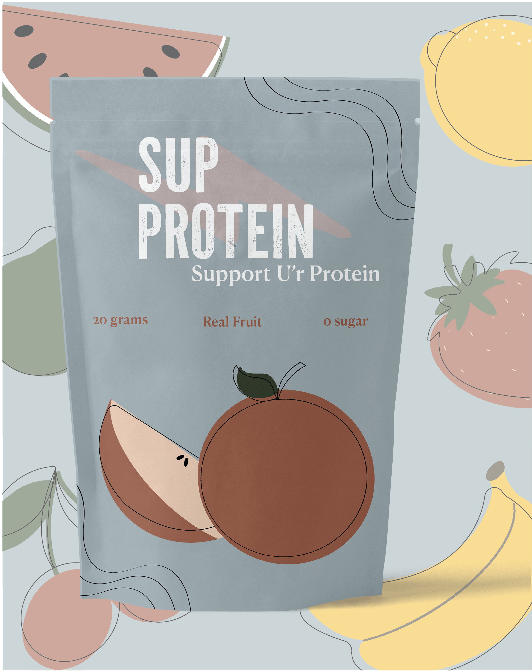 Sup! Protein is the first protein powder specifically formulated to provide the ideal balance of nutrients, protein, and glycine. It supports the teenage body’s ability to self-generate protein. The brand is designed for young, active wellness enthusiasts. It features a friendly, minimalist aesthetic. This aesthetic blends playful fonts, muted bright colors, and geometric imagery. This thoughtful design conveys health, simplicity, and approachability, perfectly aligning with its target audience’s lifestyle and values.